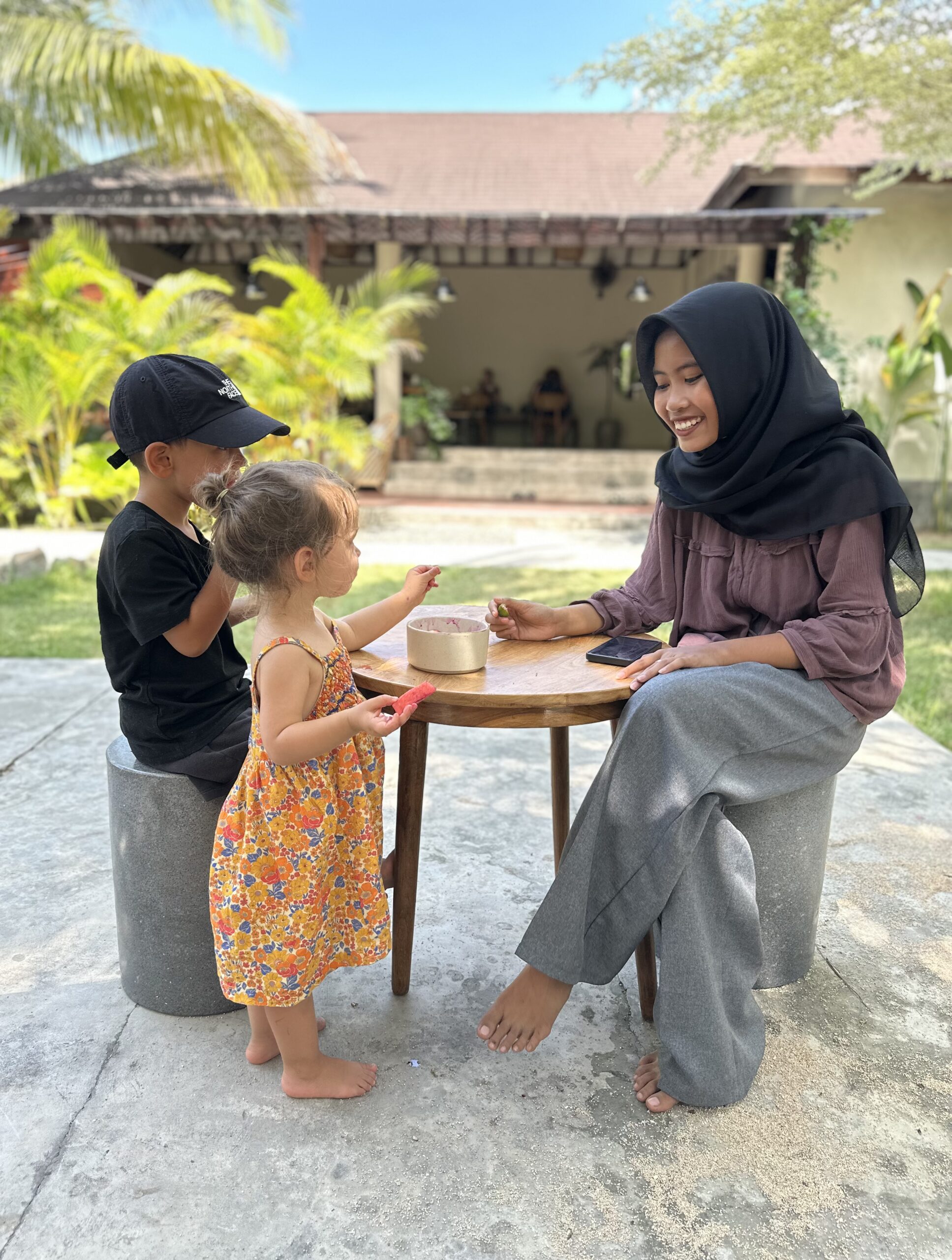 This project is also about people here on the island. By offering training and stable work, we help make childcare a respected profession and give families the chance to discover the warmth of Lombok’s culture through everyday moments.